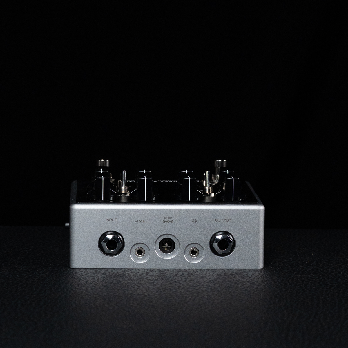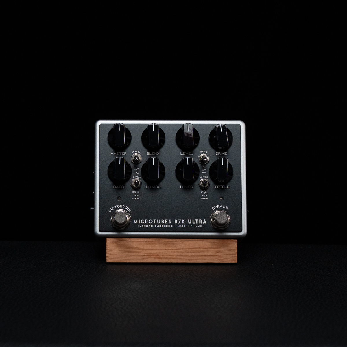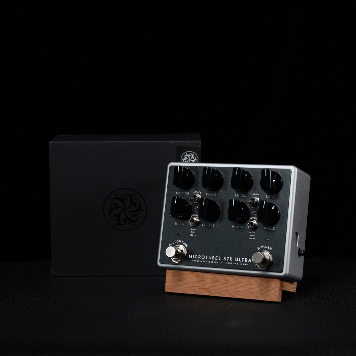 Building on the sonic tenacity of its predecessor, the Darkglass Microtubes B7K Ultra V2 bass preamp pedal offers more versatility than ever for your bass tone. The upgraded Microtubes B7K Ultra with Aux in features: (1) Single user loadable cabinet simulation impulse response. (2) Micro-USB B port to connect to PC/Mac to load a different Virtual Cabinet through the Darkglass Suite. (3) 3.5mm headphone output with cabinet simulation. (4) Balanced XLR output with switchable cabinet simulation. (5) A 3.5mm stereo input that allows you to practice with backing tracks from e.g. your smartphone or laptop.