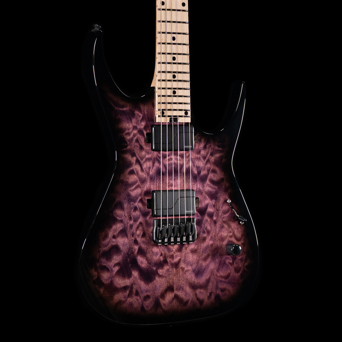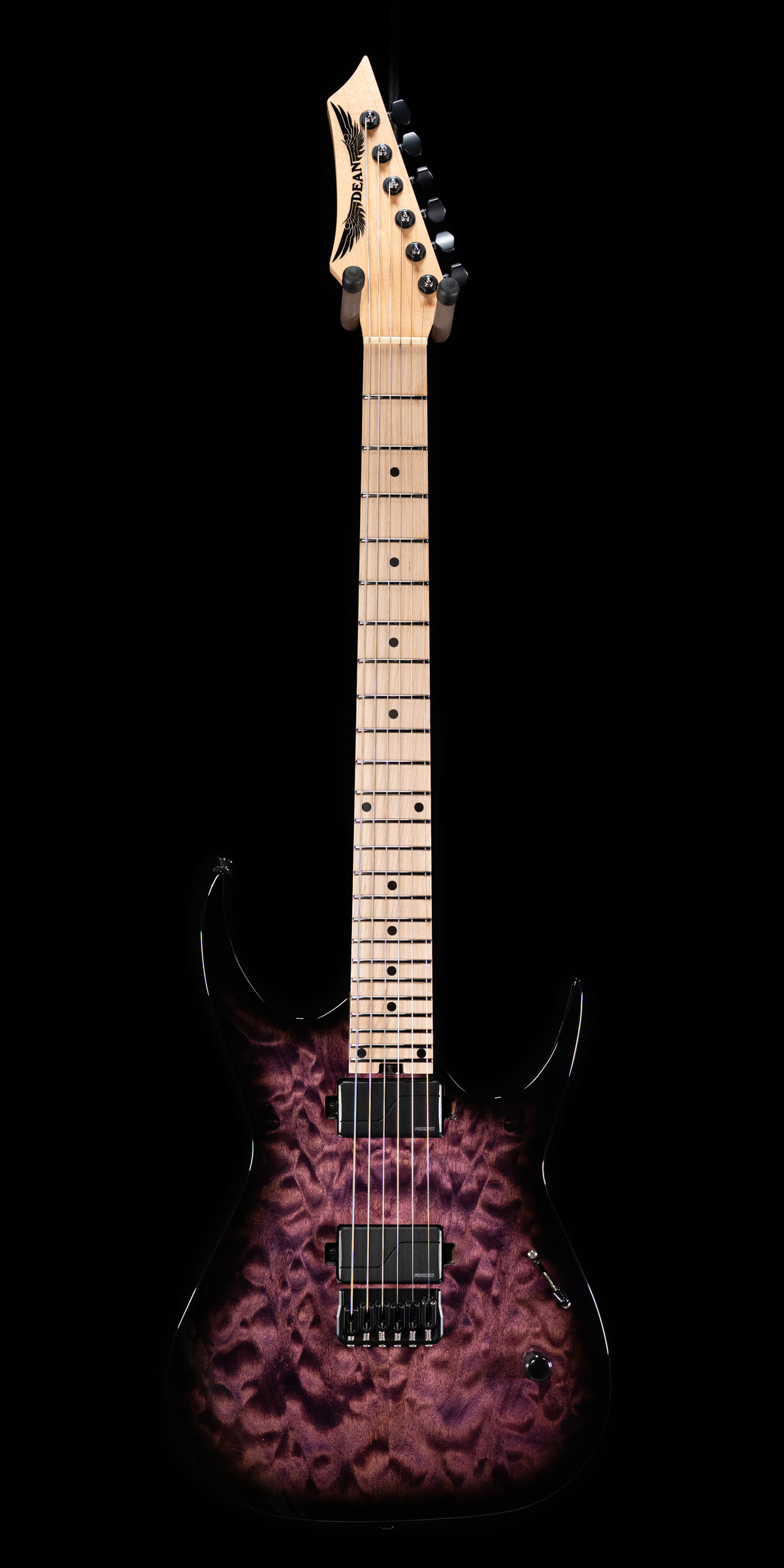 When a guitarist wants one guitar that can be used for three totally different bands like Anthrax, Shadows Fall, and Living Wreckage; Jonathan Donais came to the right place. This USA Exile is packed full of features and construction dynamics that bring this model to the next level of beauty, tone, and built like a tank to last forever. Mahogany body with a stunning Quilt Maple Top bring the classic balance of the low and high end tonal blend. Add on the 5-piece birdseye maple/ walnut neck for eye catching beauty and true stability in all climates is another step in this perfected design. In addition, we’ve added 24 stainless steel frets on the maple fingerboard, dual Fishman Fluence Modern Pickups, and a USA Hipshot Hardtail bridge on a transparent Black Burst finish to complete this beast for any stage or studio. Hardshell Case Included.