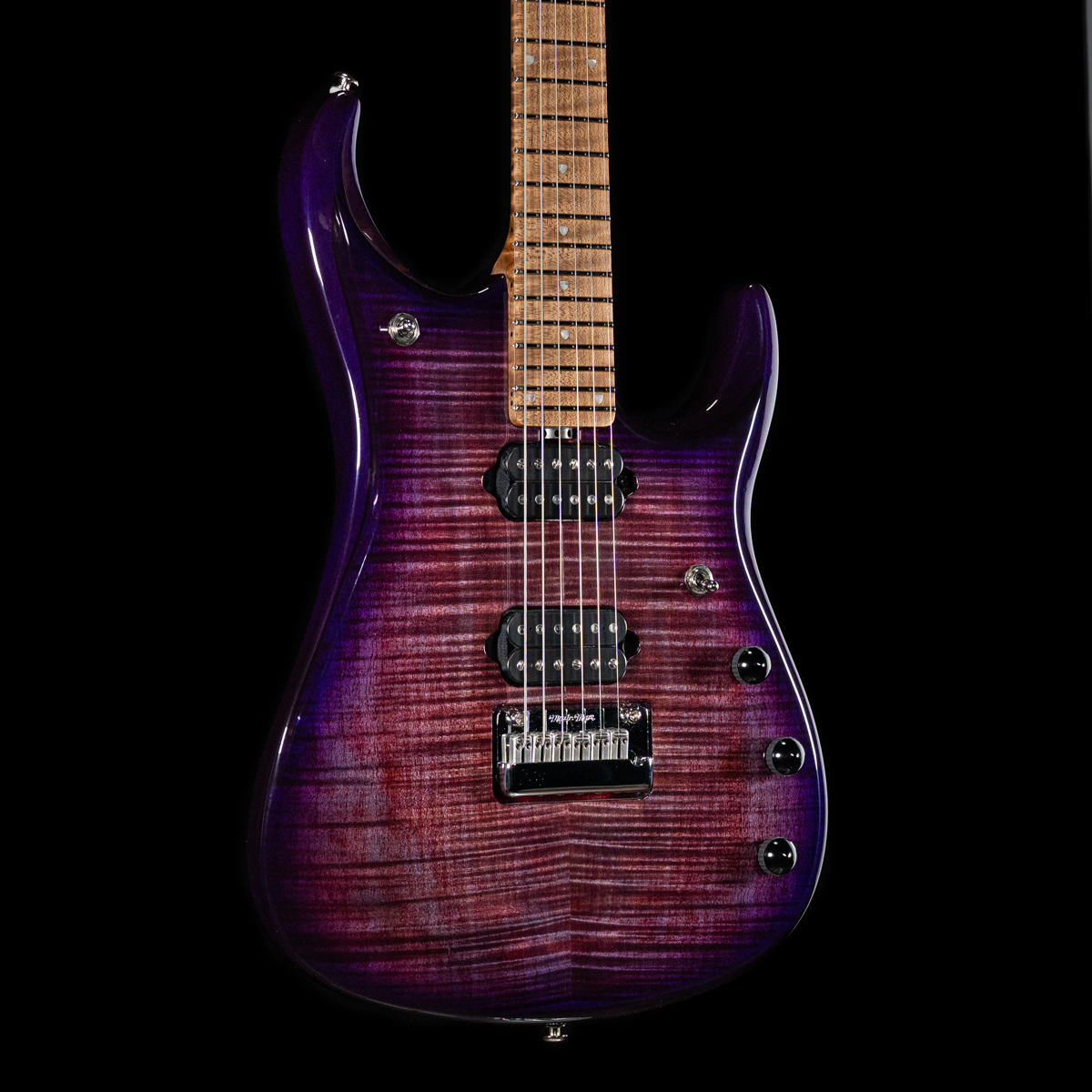 The JP15 features a lightweight Okoume body with a figured maple top. Each beautiful finish complements the flame figuring with stunning effect. Roasted maple neck and fingerboard adds just the right amount of snap and brightness while providing more stability in ever-changing climates. The JP 15 is powered by twin custom DiMarzio Illuminator pickups, piezo bridge system and onboard 20db gain boost. Available in 6 or 7 string with Music Man JP tremolo, 3-way Toggle pickup selector and Music Man hardshell case.