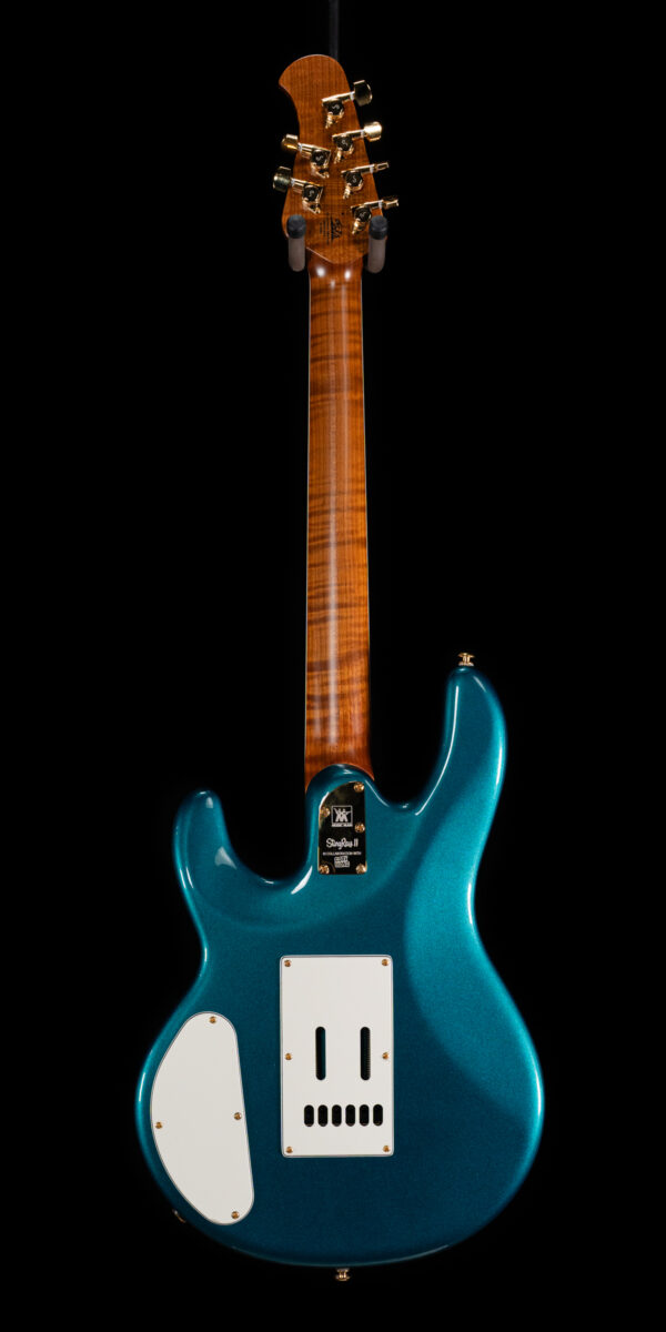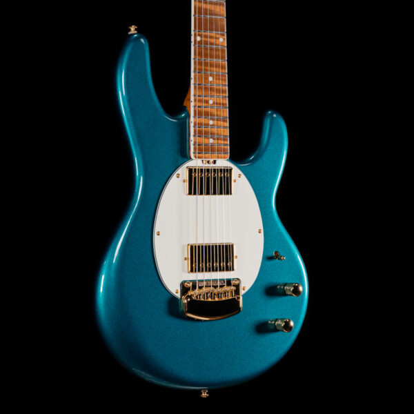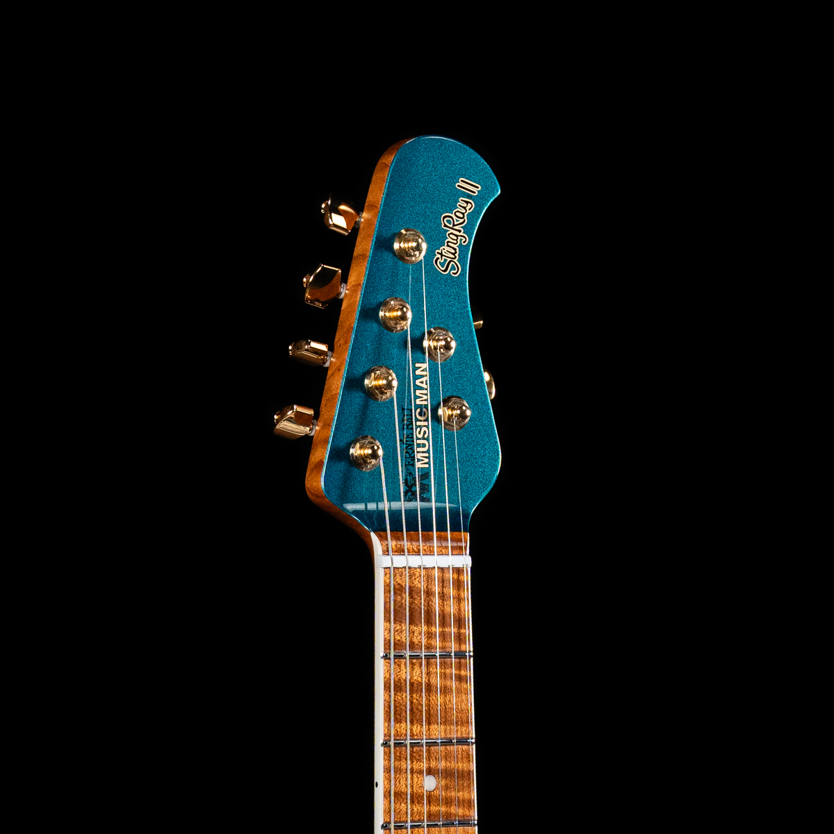 Meet the Ernie Ball Music Man StingRay II Deluxe, designed in collaboration with Cory Wong to deliver clarity, versatility, and precision for every performance. Featuring a figured roasted maple neck and fretboard with 22 stainless steel frets, parchment binding, and matching headstock. The ergonomic body design ensures smooth playability and effortless access to every fret. The sleek styling draws inspiration from the iconic StingRay Bass, enhanced by a redesigned larger headstock, custom Cory Wong neck plate, and gold hardware for a sophisticated finish. The ultra-clean Cory Wong HT humbuckers are engineered for players seeking pristine articulation and exceptional tonal balance, offering a dynamic response that captures every detail of your playing with an expanded frequency range for maximum versatility. Available in Pine Green and Polaris White, this guitar combines style, tone, and functionality.