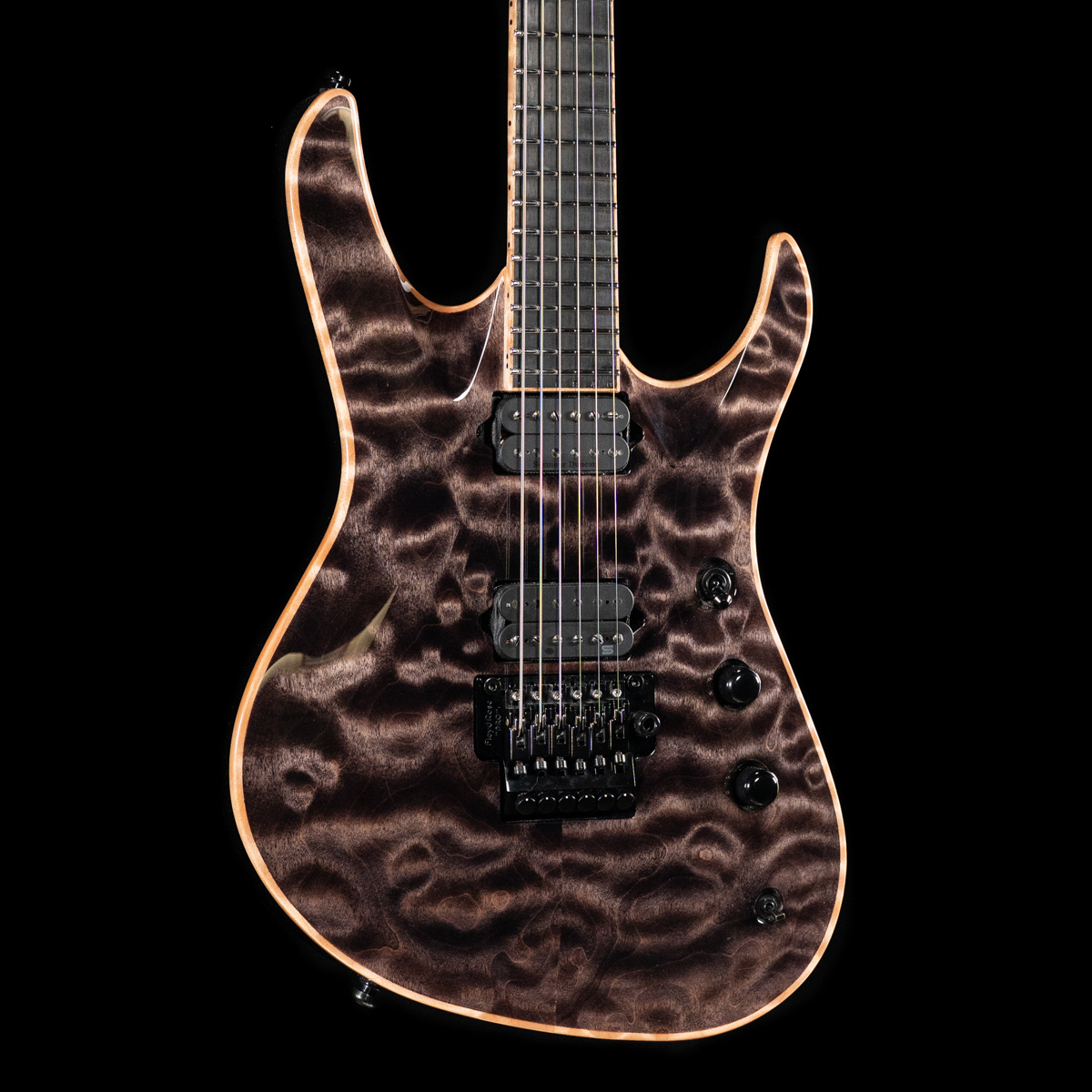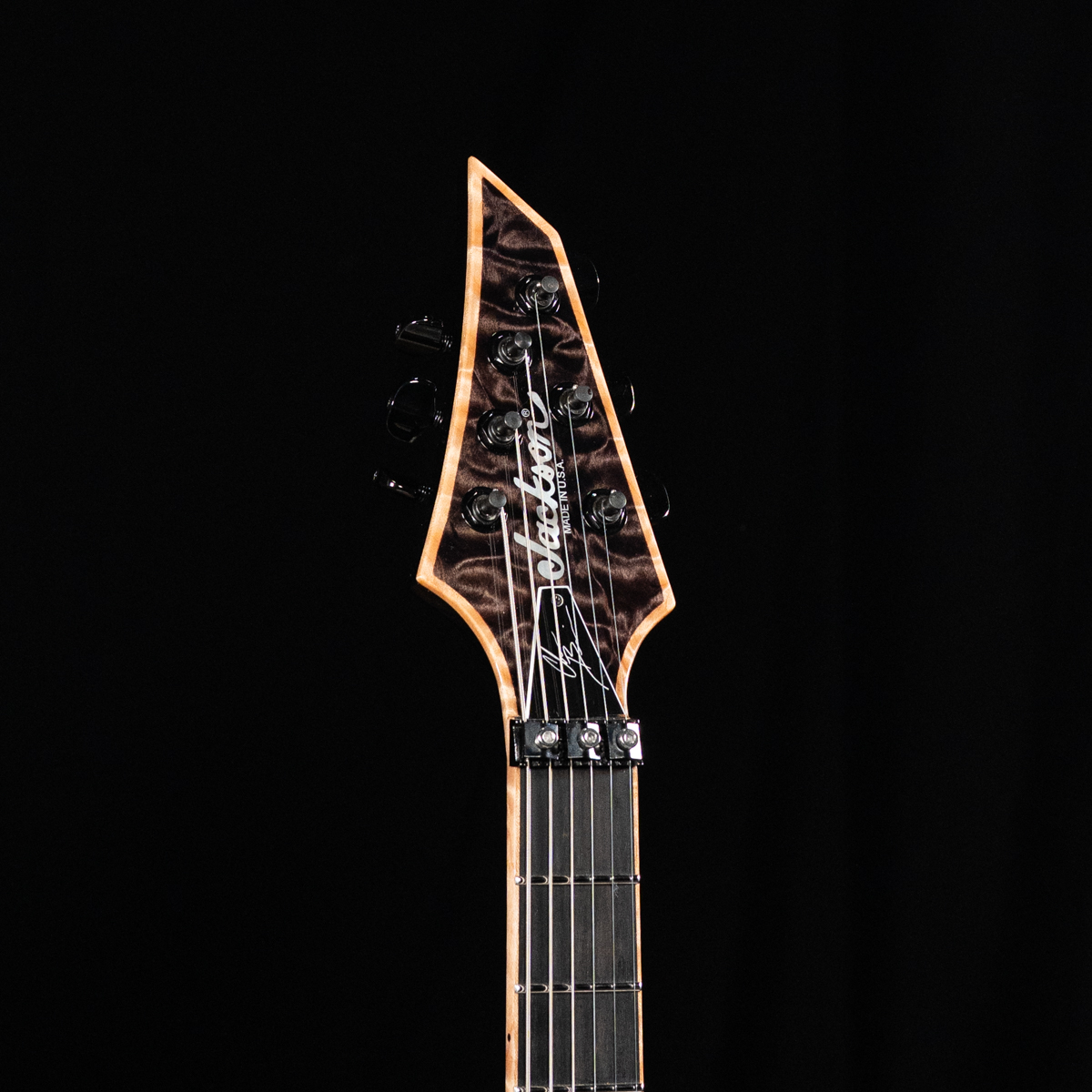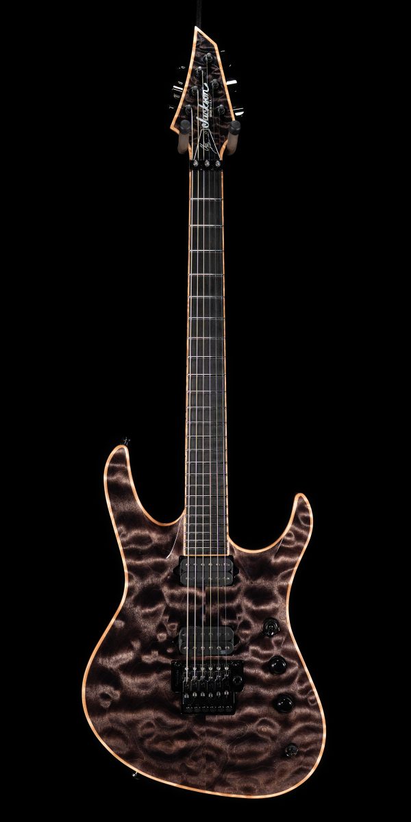When Chris Broderick joined a revitalized Megadeth in 2008, fans were awestruck by his dazzling thrash fretwork. Jackson now honors this modern metal master with the Chris Broderick Soloist, in six-string and seven-string models.Working with Jackson Custom Shop Master Builder Mike Shannon, Broderick designed his own special take on the venerable Soloist, with an offset arch-top mahogany body and quilt maple top (with matching headstock). Features include quartersawn maple neck with quilt maple binding and Floyd Rose nut, natural body and headstock binding, ebony fingerboard with 12″ radius and 24 jumbo stainless steel frets, Seymour Duncan Custom Shop Axe Palace Exclusive Nagus Humbucker Set, kill switch, recessed Floyd Rose Pro bridge, black hardware, Planet Waves Auto-Trim tuners, side-mounted Rhoads jack, Ernie Ball strap locks and case.