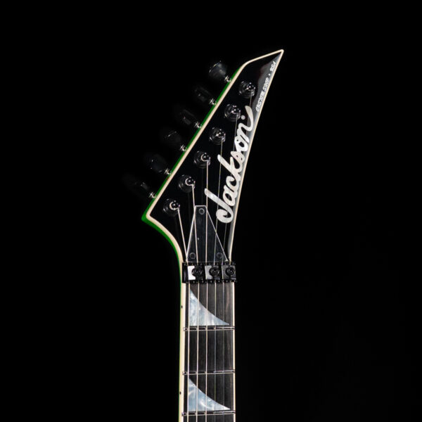 Crafted in Jackson’s renowned USA Custom Shop, this Warrior features a sleek alder body cloaked in a wild Slime Time Splatter finish that dares to stand out on any stage. The neck-through-body construction with a quartersawn maple neck ensures maximum sustain and resonance, while the ebony fingerboard delivers a tight, articulate response perfect for high-speed riffing and precision solos.