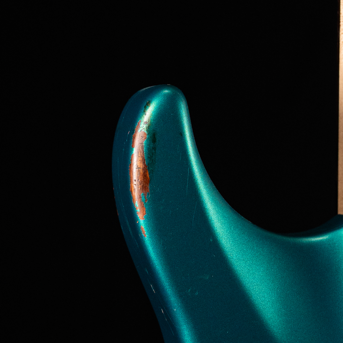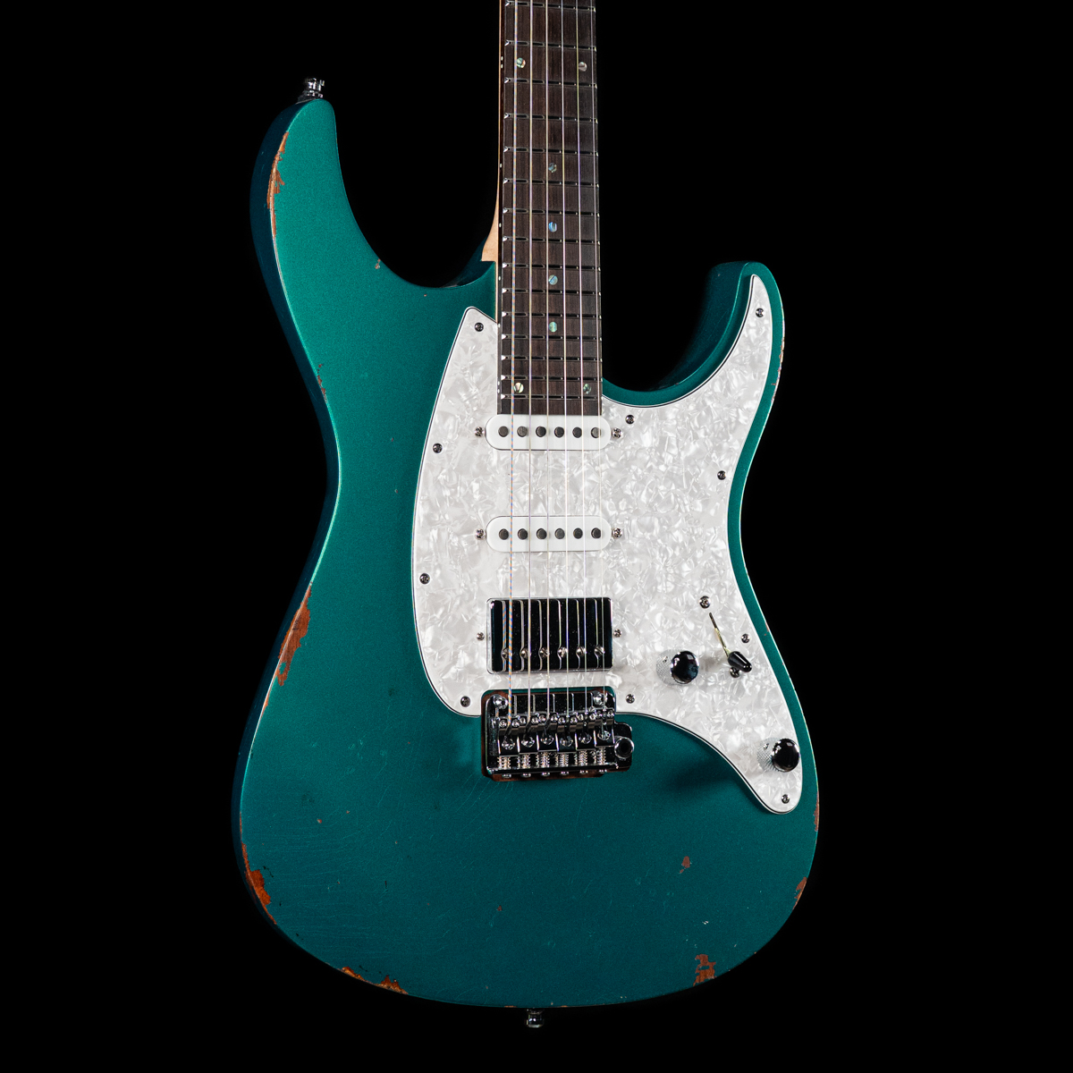 The Mayones Aquila V24 Aged – Monolith Metallic Aged Turquoise Nitro brings high-end boutique craftsmanship to the stage with its eye-catching aged neon green finish. Built on a resonant swamp ash body and featuring a one-piece maple neck with rosewood fretboard and stainless-steel frets, this instrument offers exceptional stability and lightning-fast playability. The ergonomic C-shaped neck profile and Gotoh 510 tremolo bridge enhance comfort and tuning precision, making it perfect for both intricate riffs and expressive solos.