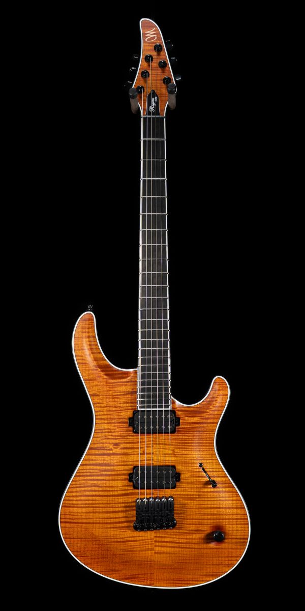 Mayones Regius Core 6-String with a 5A Flame Maple Top, Transparent Orange Satin finish, Neck-thru “Exotic-1” 11-ply Mahogany-Maple-Purpleheart-Wenge neck, Black Limba body Ebony Fingerboard, Schaller Hannes bridge, Seymour Duncan Pegasus/Sentient pickups, 24 Stainless Steel frets, Luminlay side dots, and so much more.