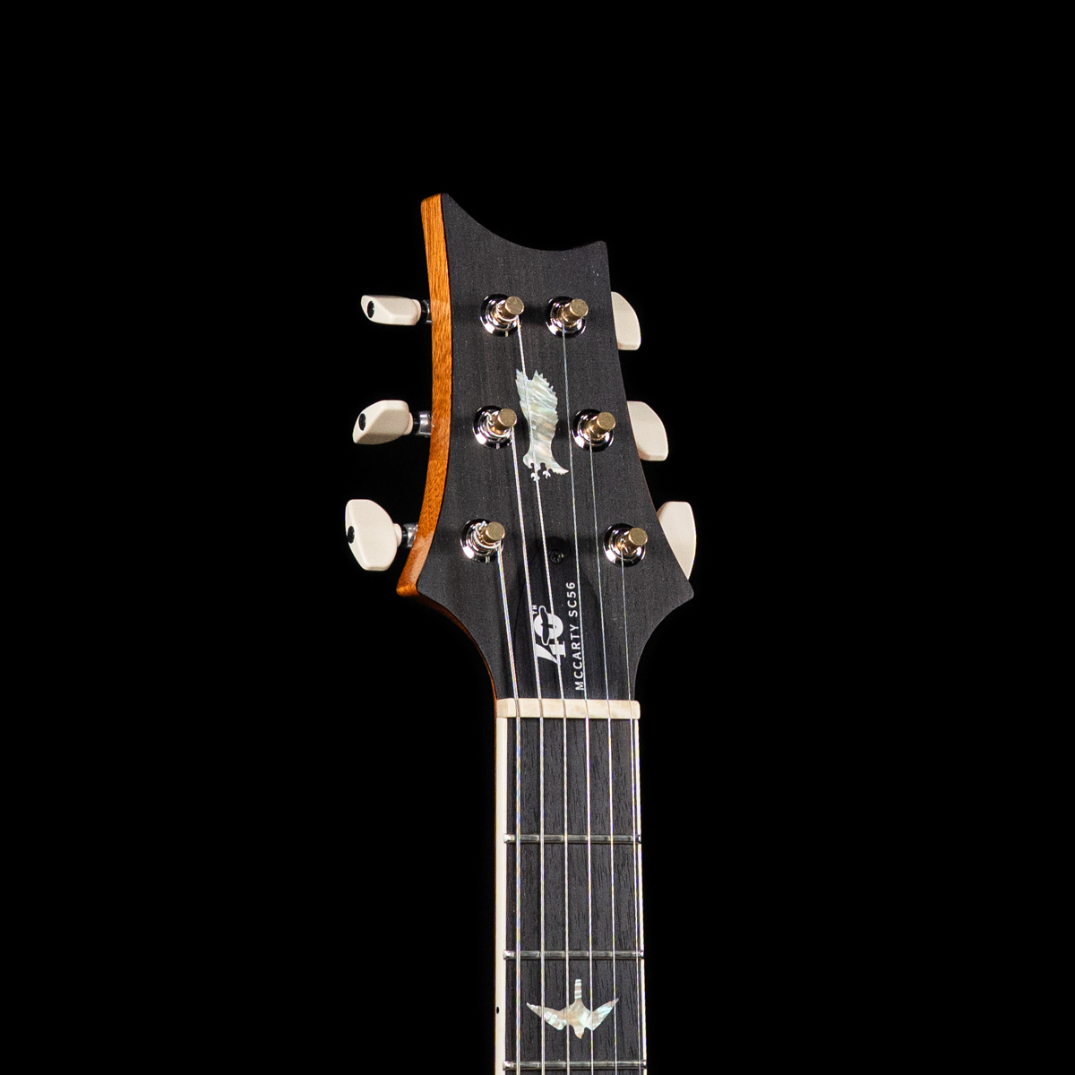 Anchored by a maple top and mahogany back, with a 22-fret, 24.594” scale length Pattern Vintage neck, the McCarty SC56 is designed for rich, resonant tone and effortless playability. The 24.594” scale length and slightly thicker back give the McCarty SC56 a warm, woody voice and comfortable feel, while its Phase III non-locking tuners and PRS two-piece bridge anchor the guitar and promote its musical sustain.