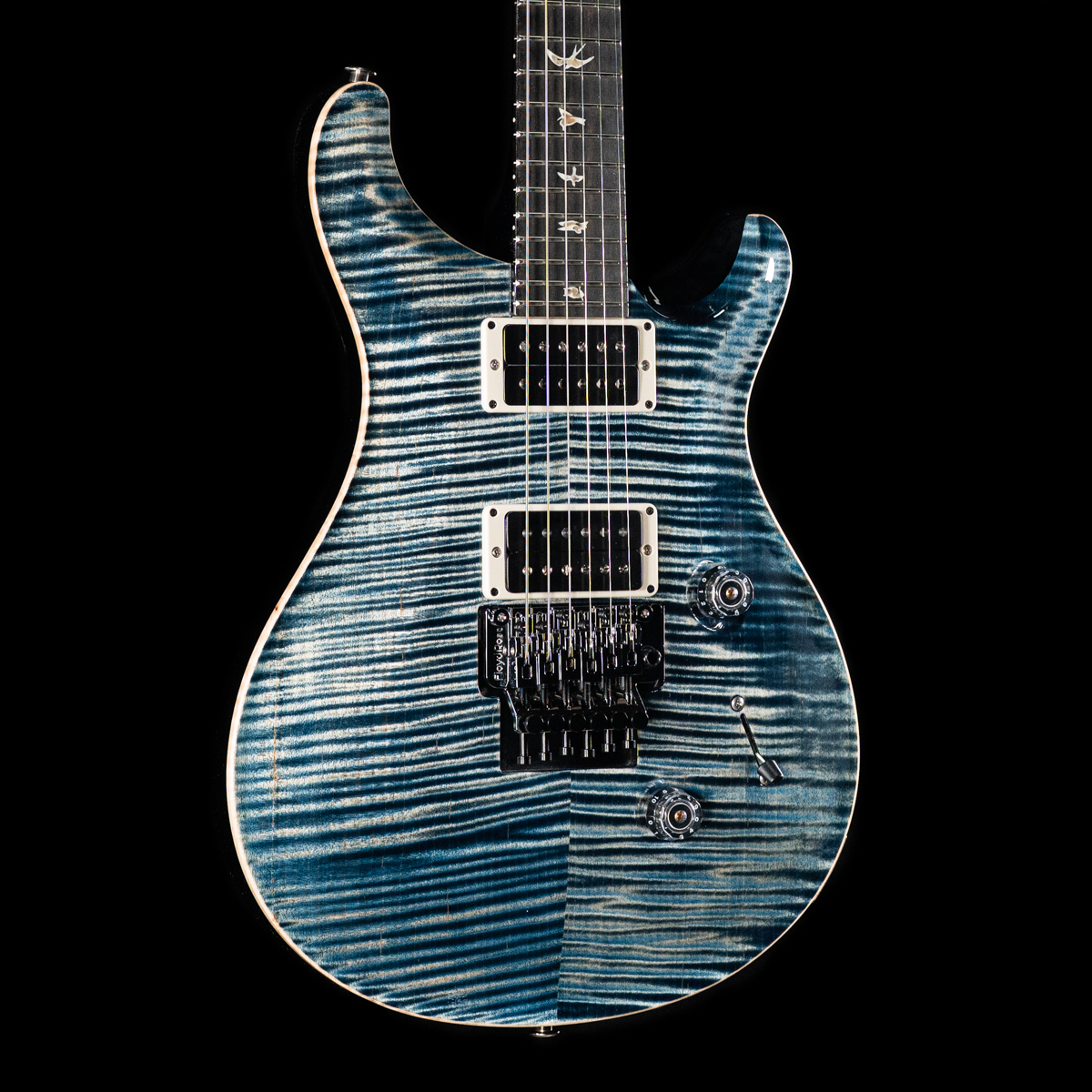 The Custom 24 “Floyd” is equipped with the time-tested Floyd Rose “Original” tremolo system and PRS’s Metal pickups. The Floyd Rose “Original” tremolo and locking nut tuning system is a double-locking design precision-made from high quality steel. This design combination allows players to lock the string at the nut and at the bridge to keep the guitar in tune even during the heaviest dive-bombing sessions.