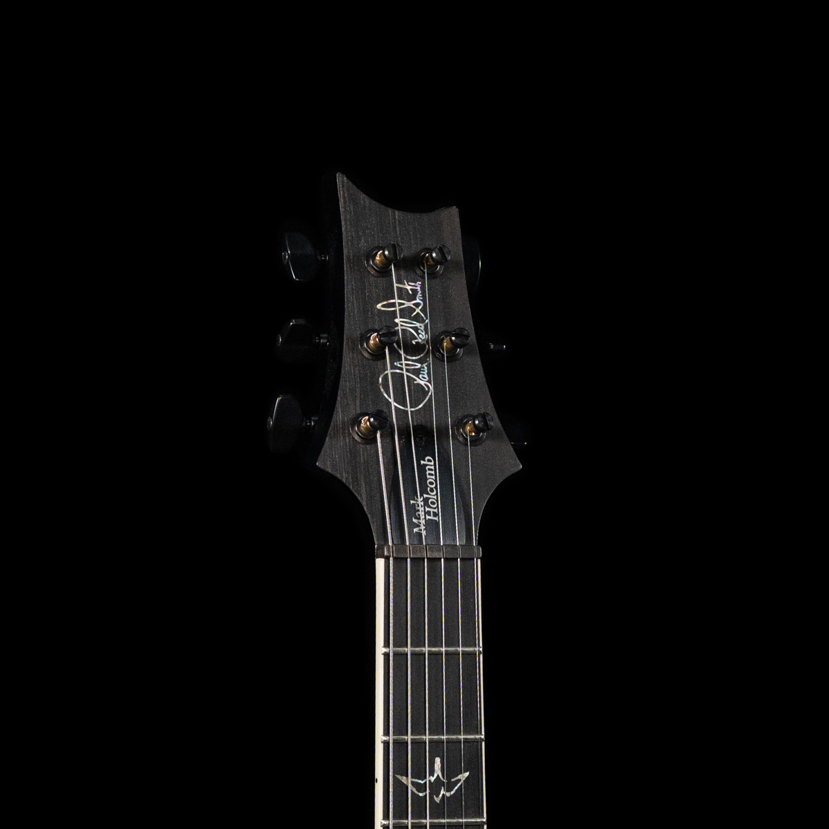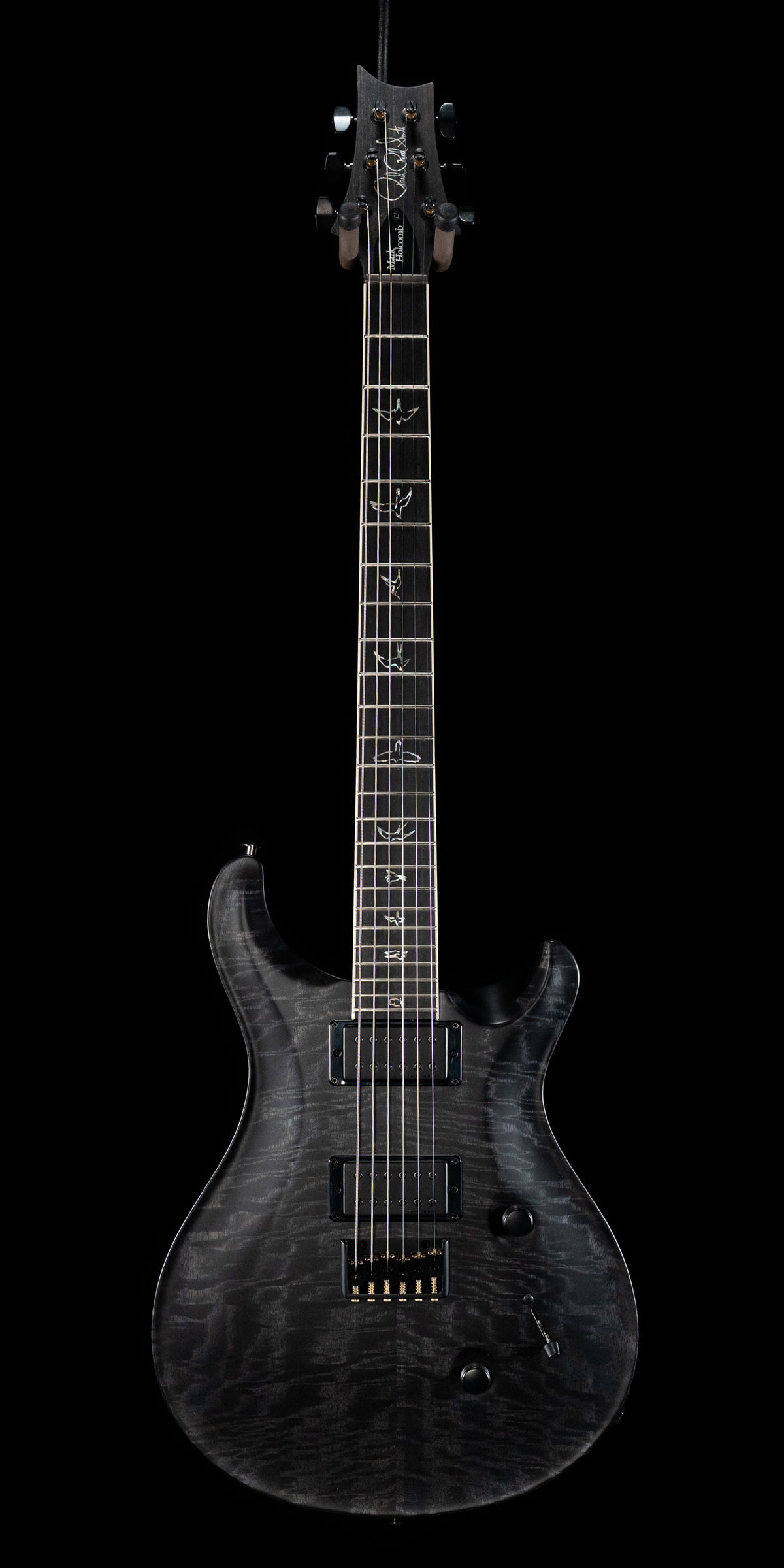 PRS Mark Holcomb USA Signature in Gray Black, with a beautiful figured top, Seymour Duncan Scarlet/Scourge pickups, Hipshot bridge, modern thin neck with 20″ fingerboard radius, hard case, and more!