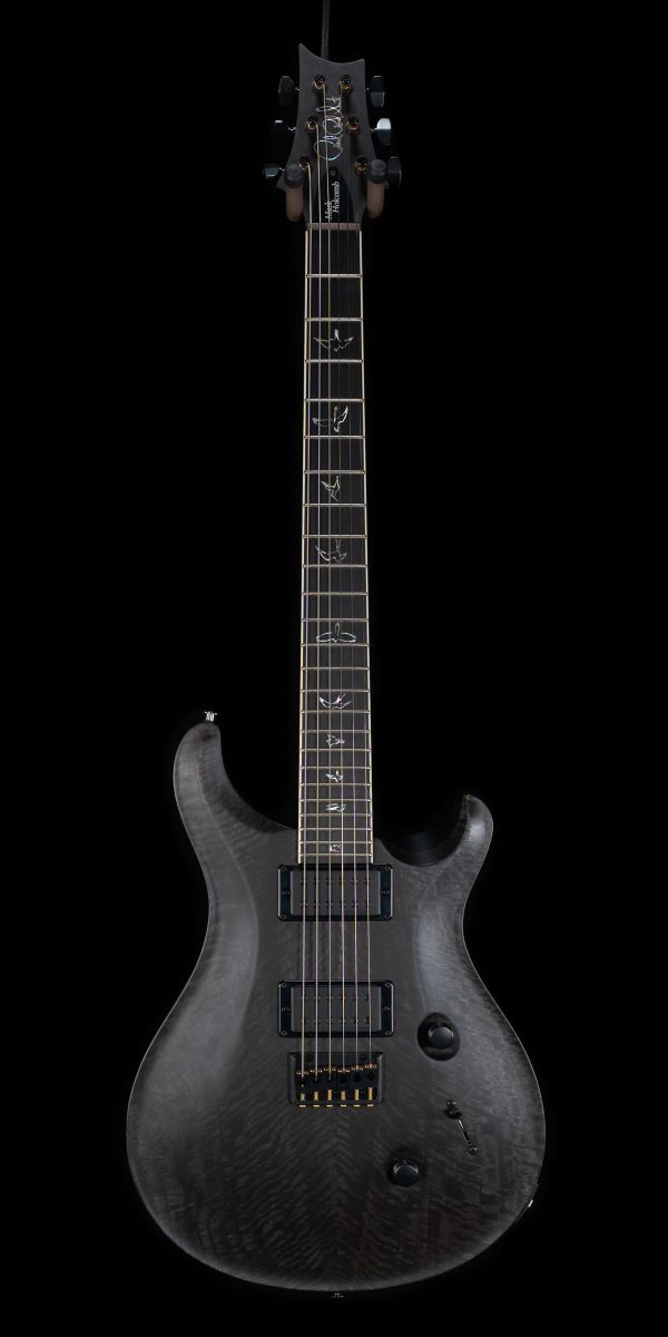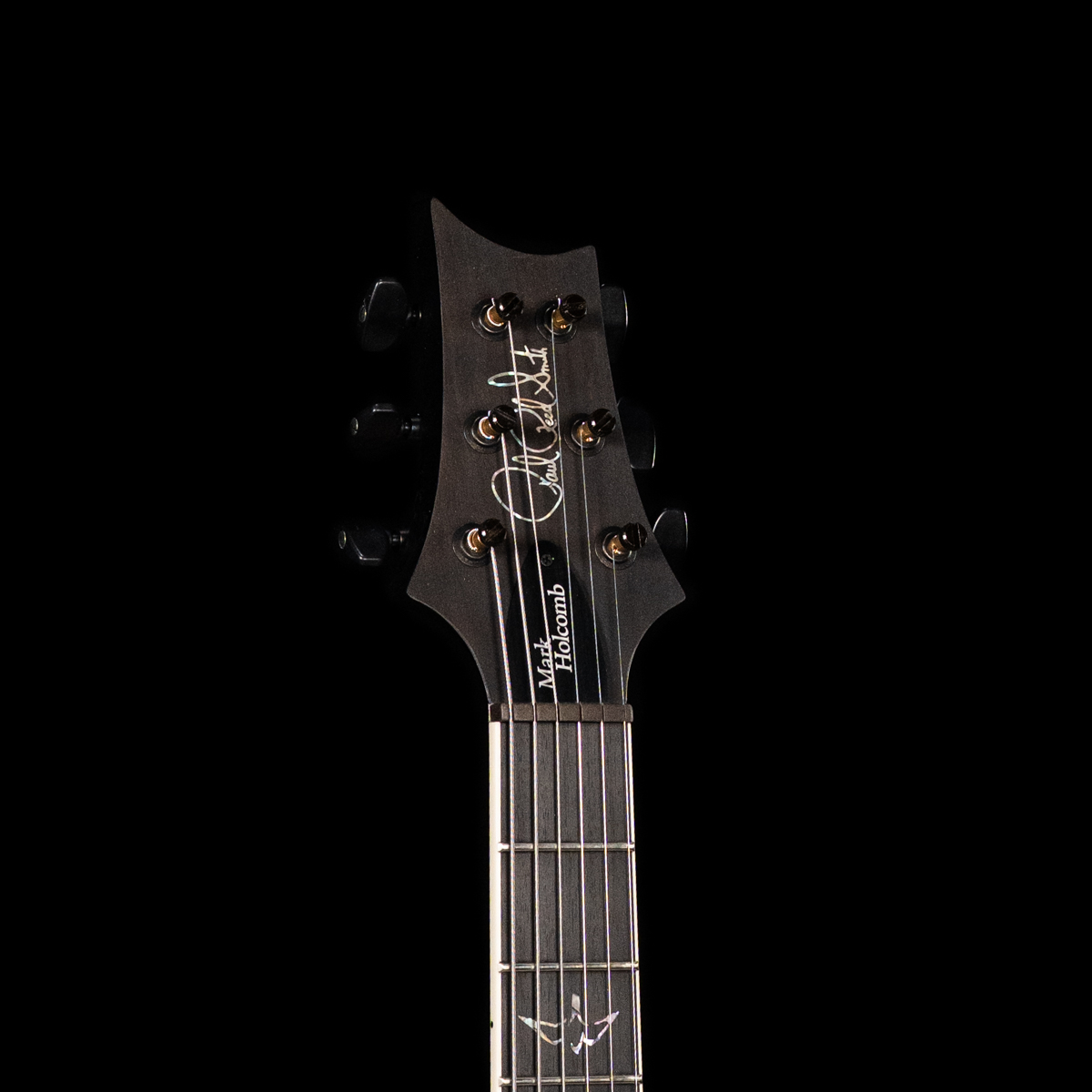 PRS Mark Holcomb USA Signature in Gray Black, with a beautiful figured top, Seymour Duncan Scarlet/Scourge pickups, Hipshot bridge, modern thin neck with 20″ fingerboard radius, hard case, and more!