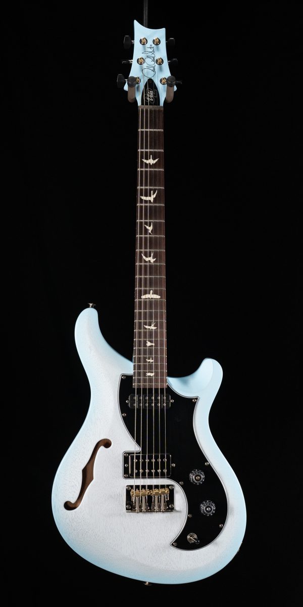 The S2 Vela Semi-Hollow Satin is a vintage-inspired, offset guitar with loads of personality and tonal textures. The all-mahogany body brings warmth and an organic tone, while the semi-hollow construction and thin, satin nitro finish give the Vela resonance and bloom.