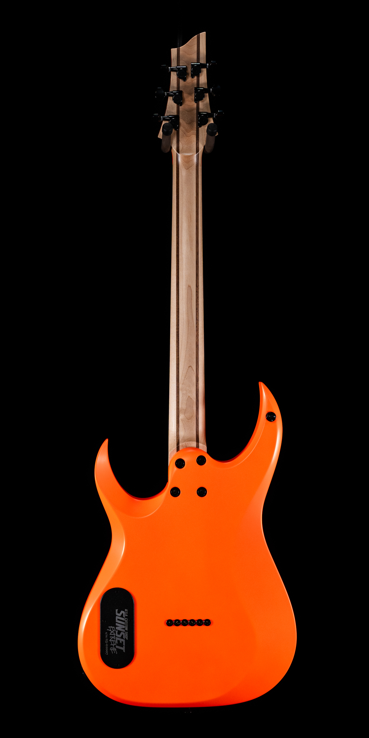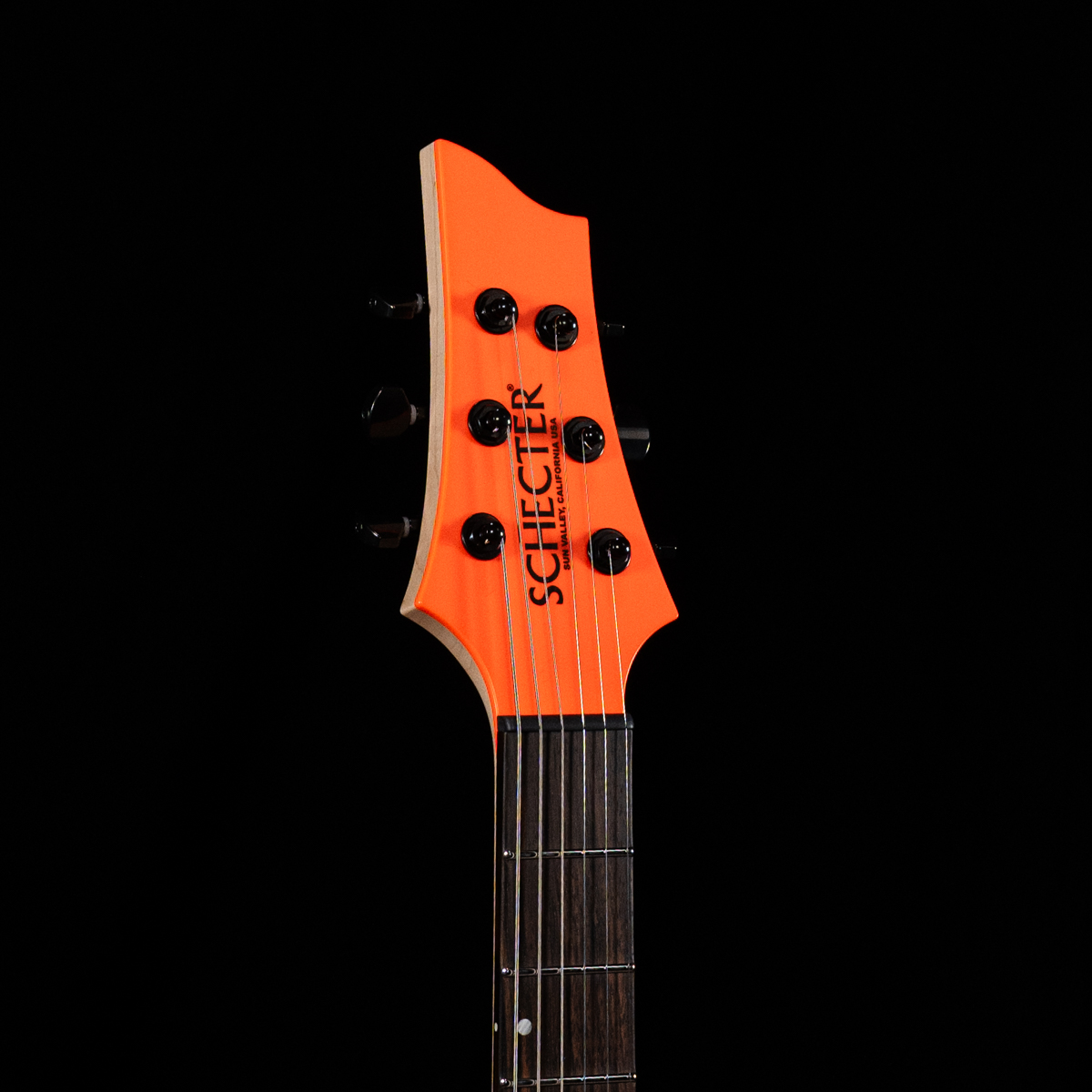 The Schecter USA Extreme is a beastly weapon built for metal guitarists who crave power, precision, and style. Its bold Neon Orange Satin finish demands attention, while the alder body with a bevel top and contoured ultra access bolt-on construction ensures comfort and supreme playability. The 5-ply Maple/Walnut neck, featuring a custom thin C shape, offers a fast and smooth feel, with a 16” fretboard radius and 24 jumbo stainless steel frets for effortless shredding.