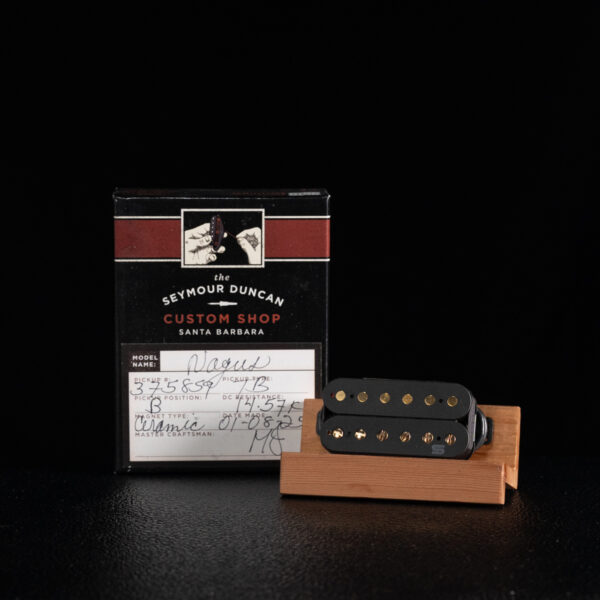 While installing the various prototype versions of the Nagus in as many different guitars as we could, we found that the Sentient was our favorite neck pickup. It is a perfect complement to what we were looking for in the Nagus bridge. We have plenty of Sentient Neck models available to match all the various colors and covers we stock for the Nagus bridge. While the Nagus is a Seymour Duncan Custom Shop creation, the Sentient models are from their “Shop Floor Custom” line, where they can change the aesthetics of an existing model, in this case to match the stylings of the Nagus, but at a lower price than a Custom Shop version.